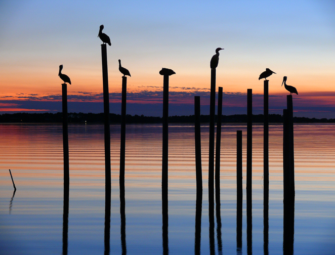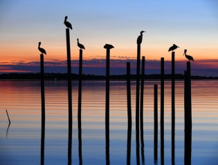 Seven Birds at Dusk, Alligator Point, Florida, USA